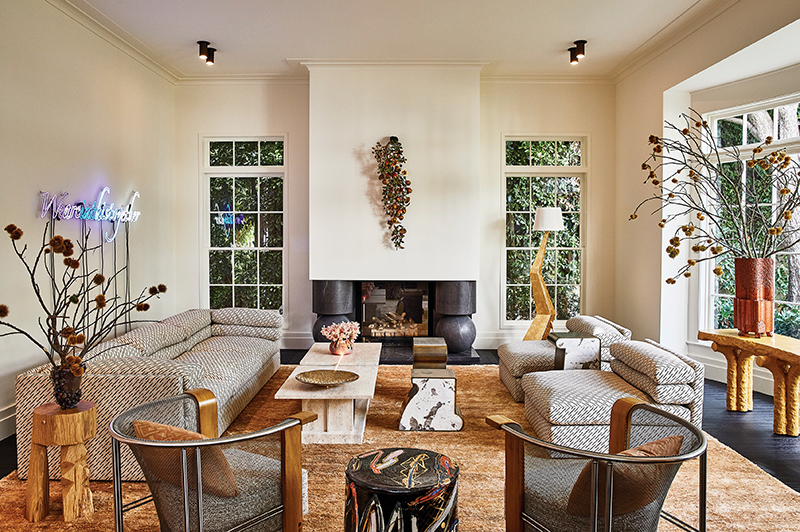 부부가 사랑하는 오브제로 둘러싸인 거실에 있는 넬시아와 파브리치오.
