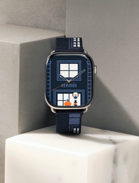 애플워치를 통해 10년간 협업을 이어온 애플 Apple과 에르메스 Hermès가 새로운 기념 컬렉션을 선보인다. ‘포부르 파티 Faubourg Party’ 드로잉으로 시작된 이번 협업은 파리 포부르 24번가 매장의 상징적인 파사드를 픽셀 스티치로 구현, 시간과 날씨, 날짜에 따라 다르게 살아나는 24가지 장면을 다이얼로 담아냈다.