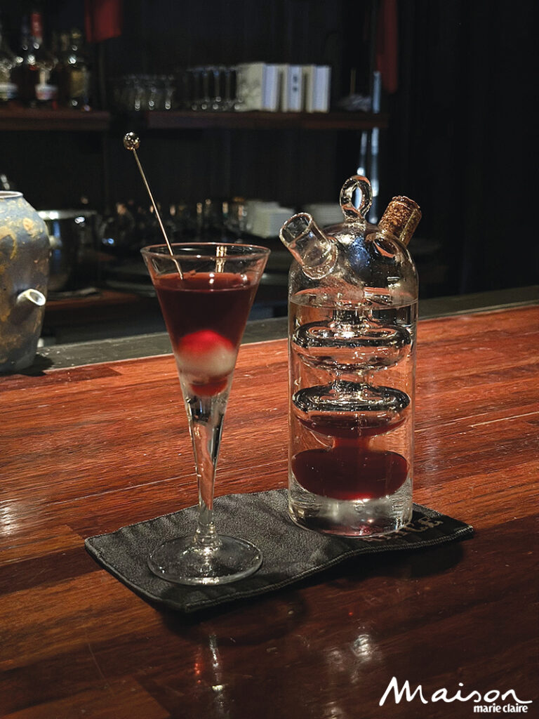 르챔버는 청담동에 위치한 ‘스피크이지 바’이다. 스피크이지 바는 1920~30년대 미국 금주법 시대 간판 없이 비밀리에 영업하던 바를 뜻한다. 콘셉트에 걸맞게 르챔버가 위치한 건물의 계단을 내려가면 비밀스러운 책장이 등장하는데, 그중 상단에 위치한 책 모형을 한 권 누르면 문이 열리는 구조다. 문이 열리면 바깥과는 전혀 다른 화려하고 드넓은 바 전경이 펼쳐진다. 바텐더들의 환대를 받으며 착석하면 커버 차지(인당 1만원) 안내와 함께 메뉴에 대한 간단한 설명을 들을 수 있다. 첫 잔으로 주문한 ‘서커스 콤플렉스’와 ‘래핑 부다’는 메뉴판에 적힌 재료를 보고 맛을 추측해 요청했다. ‘서커스 콤플렉스’는 레몬그라스 피스코와 스파이시한 남미의 향신료 맛이 어울리는 시원한 맛으로, 목넘김이 가벼워 부담 없이 즐길 수 있는 맛이다. ‘래핑 부다’는 이름처럼 부처 모양의 술잔에 담겨 제공됐는데, 연태고량주와 파인애플의 조화로 익숙하면서도 이국적인 트로피컬한 맛이 인상적이었다. 두 번째 잔은 각각 선호하는 맛에 따라 바텐더의 추천을 받아 주문했다. 단맛보다는 드라이한 맛을 즐긴다고 하자, 바텐더는 ‘아마로 프레스코’를 추천해주었다. 호지차에 위스키 베이스, 허브로 만든 리큐르 두가지를 더해 만들었다고 한다. 향긋한 허브의 풍미와 호지차의 맛이 적절한 밸런스를 이뤄 입안을 맴돌았다. 동행인이 주문한 ‘비터스윗 키스’는 오이 베이스의 토닉으로 만든 칵테일로, 잔에 화이트 초콜릿을 리밍해 제공한다. 잔 입구에 리밍된 초콜릿이 단단하게 굳어져 적절하게 달콤함과 리프레싱한 맛이 조화롭게 어우러졌다. 올해 아시아 50 베스트 바 50위로 선정된 르챔버는 그동안 꾸준히 리스트에 이름을 올려온 덕인지 매장엔 외국인 관광객들도 많았다. 평일 이른 저녁에 가서 웨이팅은 없었지만, 오후 10시 전후가 되자 만석이 됐다. 전화 예약도 가능하다 하니 참고할 것.